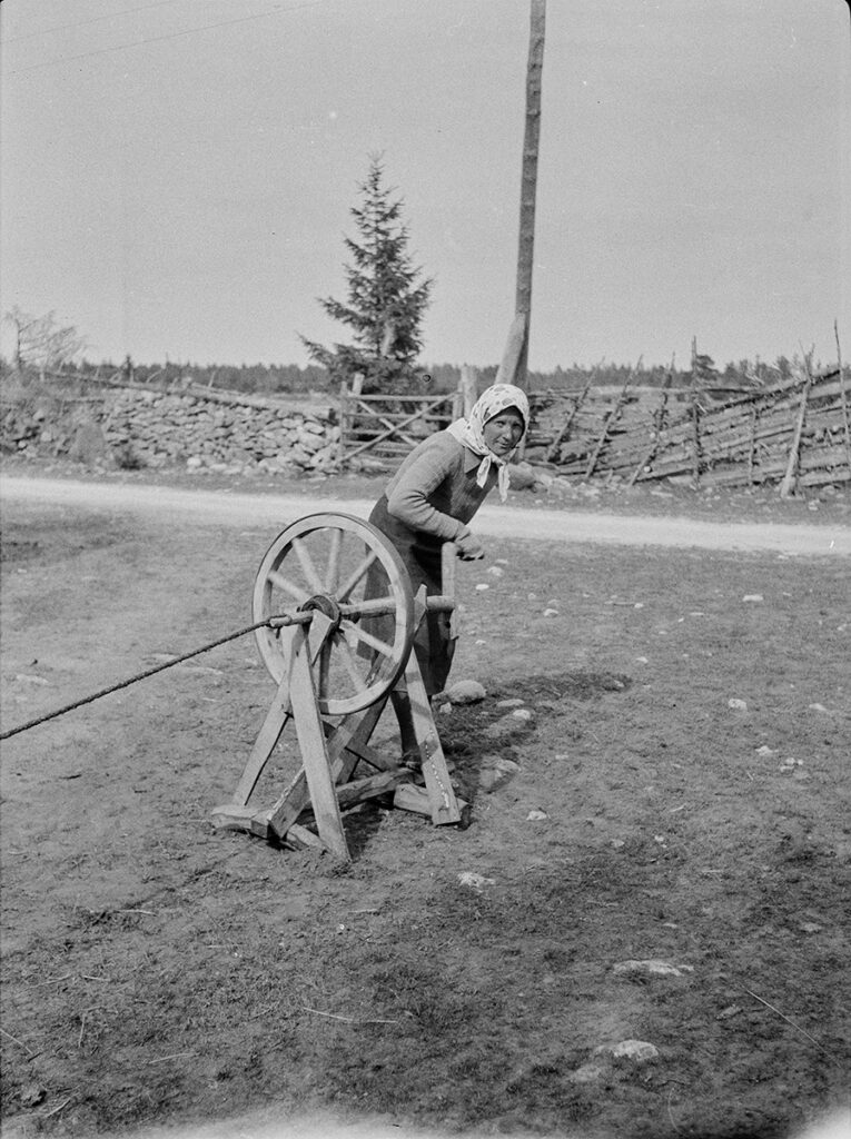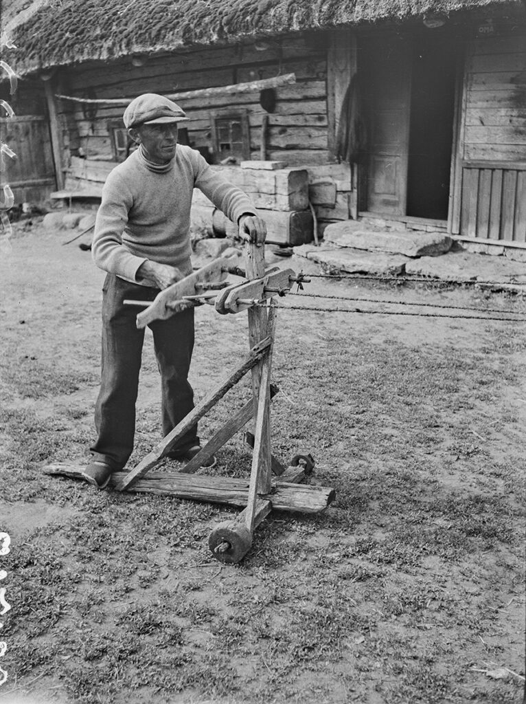 Foto, millest käesolev postitus alguse sai. Köie kokkulöömine, keeruväntade ajamine, Kõlaja t, Lätiniidi k, Tagamõisa, Kihelkonna khk. Fotol töötab Jüri Tulgi emapoolne vanaisa Jaan Kannel (1903–1951). Foto Gustav Ränk, 1940. ERM Fk 892:36