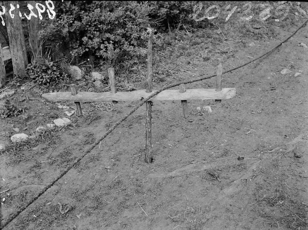 Köiehark, mis keerutatavad keed kokkulöömise ajal lahus hoiab. Kõlaja t, Lätiniidi k, Tagamõisa, Kihelkonna khk. Foto Gustav Ränk, 1940. ERM Fk 892:39