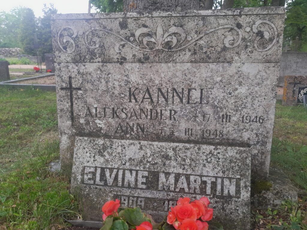 Hauaplats Kihelkonna kalmistul. Esiplaanil Aleksander Kanneli ja tema tütre Elvine Martini hauakivid. Foto Jüri Tulk, 2025