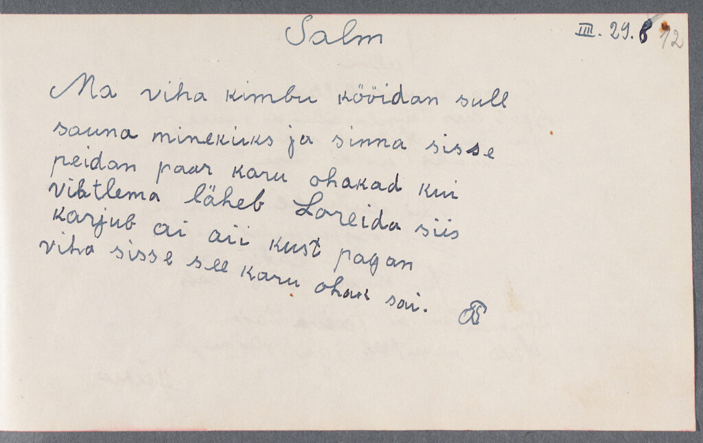 Salm Loreida Mutsoni salmikust 1929. ERM Ak 28:5/55