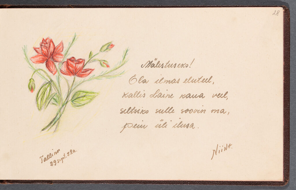 Kui selle loo lugemise ajal tekkis sul soe äratundmisrõõm ja kuskil sahtlipõhjas peidab end veel sinu vana salmiraamat, siis oleme väga tänulikud, kui jagad meiega sealt mõnda värssi või kaunist joonistust.