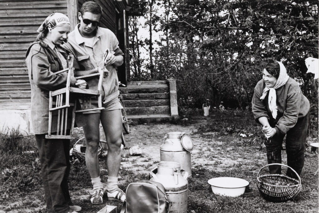 Etnograafiamuuseumi teaduslikud töötajad Katrin Savomägi ja Heiki Pärdi Setumaal. Mäe vald, Võõpsu,1976. Foto: Vello Ojanurme. ERM Fk 1779:13