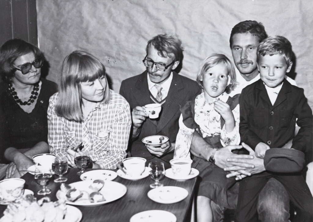 K. Tammur, V. Tuubel, U. Ojala ja H. Pärdi koos laste Maria ja Mikuga, 1983. Foto: Aldo Luud. ERM Fk 2055:19