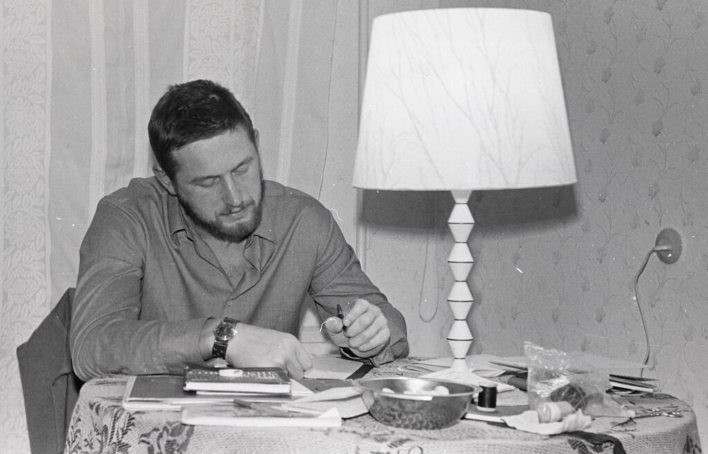 Ekspeditsiooni ülem Heiki Pärdi päevikusse sissekannet tegemas. Murmanski obl. Foto: Aado Lintrop, 1981. ERM Fk 1942:51