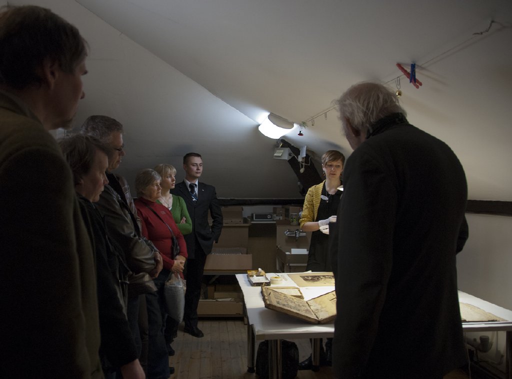 „Meie katusekambri vaatevinklist sujus sünnipäeva tööpäev igati hästi ja täitis oma eesmärgi. Huvilisi jagus terveks päevaks, pisikestest vanakesteni, naisolevustest meesteni. Ja jäi tunne, et huvi ei olnud ainult formaalne. Midagi ekstra selleks päevaks fondisügavustest töölauale me ei toonud, sest igapäevarutiin niigi piisavalt huvitav ja inspireeriv. Üldse on meil ehk paljude teistega võrreldes lihtsam pidada tutvustavaid kõnesid, sest saame sujuvalt liikuda üldiselt üksikule, abstraktselt konkreetsele, seletada paari lausega lahti tausta ja siis illustreerida seda mõne konkreetse käegakatsutava esemega. Jagasime teavet materjalide ja töövahendite kohta, ka seda, kust neid on võimalik hankida. Andsime huvilistele nõu ja arutlesime koos filmide-fotode puhastamise-hoidmise teemadel. Selgitasime, et legendiga ese või kogu omab palju suuremat väärtust kui lihtsalt asjad. Võimalik, et selle tulemusena täieneb meie fotokogu. Julgustasime selleks inimesi ja jagasime peavara- ja vanemkoguhoidja kontaktandmeid.“ Teal ja Ennol on õigus, selliseid päevi võiks sagedamini korraldada.